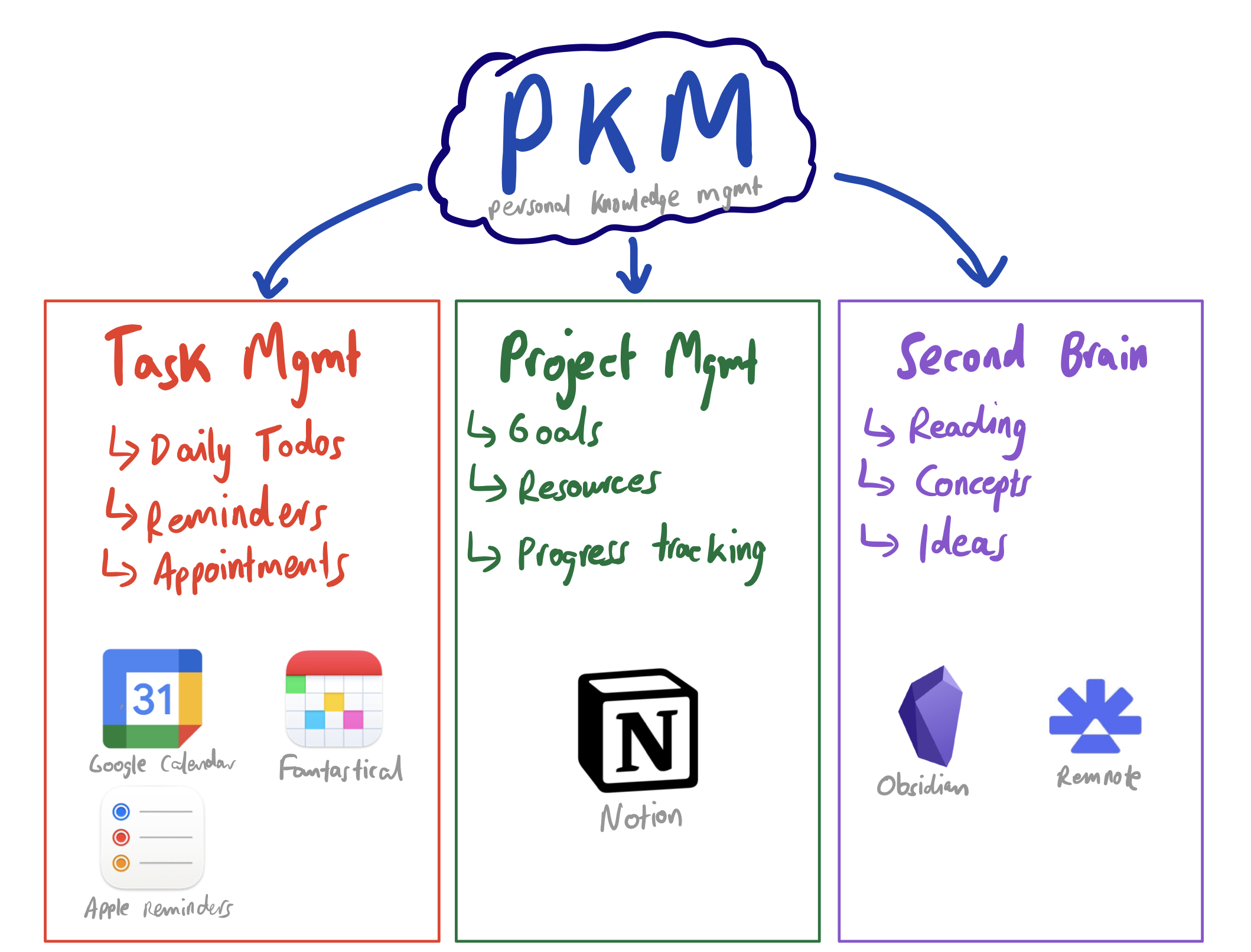 ![]() 그림 설명 | The image shows a hand-drawn diagram with various elements connected to each other, representing different aspects of work or project management. At the top, there is a cloud labeled "PM" which stands for Project Manager. From this central point, three main branches extend outward: 1. Task Myth: This branch has two sub-branches: "Daily tasks" and "Google Calendar." The "Daily tasks" sub-branch includes items such as "Reading," "Appointments," and "Progress tracking." The "Google Calendar" sub-branch shows an icon of a calendar with the Google logo. 2. Project Myth: This branch has two sub-branches: "Goals & Objectives" and "Resources." The "Goals & Objectives" sub-branch includes items like "Reading," "Appointments," and "Progress tracking." The "Resources" sub-branch shows an icon of a clipboard with papers, suggesting documentation or resources. 3. Second Brain: This branch has two sub-branches: "Reading" and "Ideas." The "Reading" sub-branch includes items such as "Google Calendar," "Appointments," and "Progress tracking." The "Ideas" sub-branch shows an icon of a light bulb, symbolizing ideas or creativity. The diagram is colorful with various colors used to differentiate between the different elements. It appears to be a personalized system for organizing tasks, projects, and resources within a professional context. | 이미지는 서로 연결된 다양한 요소가 있는 손으로 그린 다이어그램을 보여주며, 이는 작업 또는 프로젝트 관리의 다양한 측면을 나타냅니다. 맨 위에는 프로젝트 관리자를 의미하는 "PM"이라는 레이블이 붙은 구름이 있습니다. 이 중심점에서 세 개의 주요 브랜치가 바깥쪽으로 확장됩니다. 1. 작업 신화: 이 브랜치에는 "일상 작업"과 "Google 캘린더"라는 두 개의 하위 브랜치가 있습니다. "일상 작업" 하위 브랜치에는 "읽기", "약속", "진행 상황 추적"과 같은 항목이 포함됩니다. "Google 캘린더" 하위 브랜치에는 Google 로고가 있는 캘린더 아이콘이 표시됩니다. 2. 프로젝트 신화: 이 브랜치에는 "목표 및 목적"과 "리소스"라는 두 개의 하위 브랜치가 있습니다. "목표 및 목적" 하위 브랜치에는 "읽기", "약속", "진행 상황 추적"과 같은 항목이 포함됩니다. "리소스" 하위 브랜치에는 문서 또는 리소스를 암시하는 종이가 있는 클립보드 아이콘이 표시됩니다. 3. 두 번째 뇌: 이 브랜치에는 "읽기"와 "아이디어"라는 두 개의 하위 브랜치가 있습니다. "읽기" 하위 브랜치에는 "Google 캘린더", "약속", "진행 상황 추적"과 같은 항목이 포함됩니다. "아이디어" 하위 브랜치는 아이디어나 창의성을 상징하는 전구 아이콘을 보여줍니다. 다이어그램은 다양한 색상을 사용하여 다양한 요소를 구분하는 다채롭습니다. 전문적인 맥락에서 작업, 프로젝트 및 리소스를 구성하기 위한 개인화된 시스템인 듯합니다 |