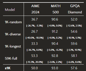 - 최종적으로 1,000개의 균형 잡힌 샘플(s1K) 생성