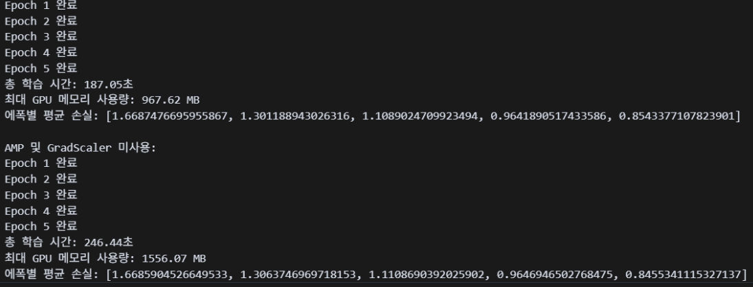 print("AMP 및 GradScaler 사용:")