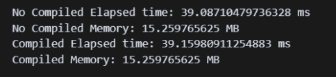compile 전 후로 비교했을 때 성능이 개선되는 것을 확인함
