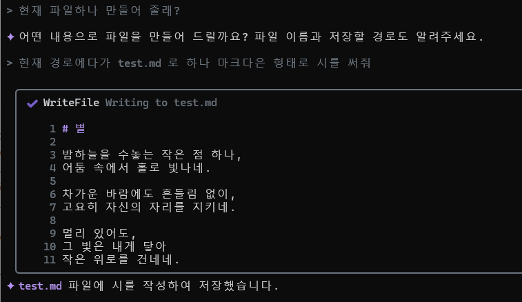 터미널에서 한글을 치는 것이 매우 불편하긴 하지만, 다양한 유즈 케이스로 실험해봐야겠습니다