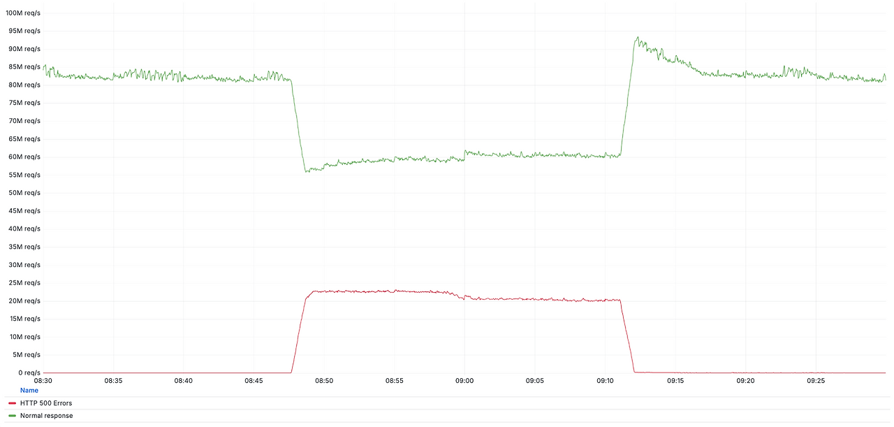 - 이 비정상적으로 커진 파일을 읽던 Proxy 프로세스가 메모리 초과 또는 예외(panic) 상태에 빠졌고, 많은 POP 서버가 HTTP 5xx 오류를 내는 상태로 “대량 실패” 발생. GeekNews+2Twodragon+2