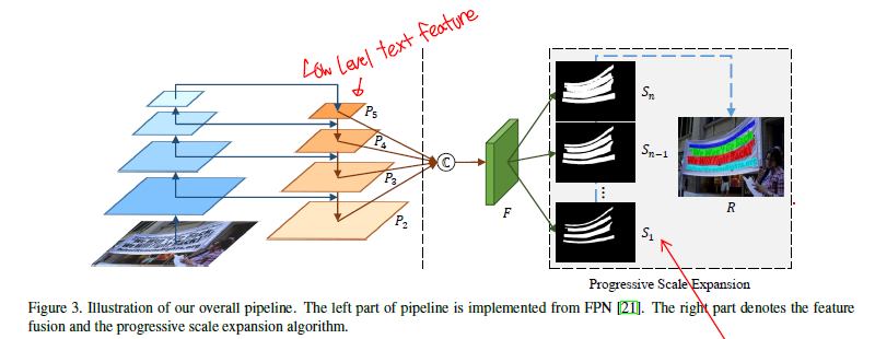 PSENet에서 Segmentation result를 생상하게 된다 다른 스케일의(s1 , s2, s3,... sn)