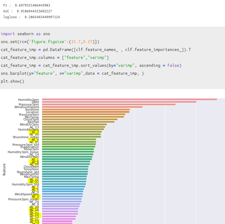 변수 중요도에서변수 중요도에서 AutoEncoder 관련 변수들이 상위권에 있는 것을 알 수 있습니다.