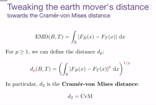 최근에 분포간 거리를 재는 것에 대해서 관심을 가지고 있게 되고, 다 어디서 들어봤지만, 먼가 명확히 정리해준 것 같아서 좋았고, 실제로 ks로 비교하고 있었는데, wassernstein distance 나 cramer distance를 제공하기 때문에 사용하면 더 엄밀하게 분포 간 비교를 하는데 활용할 수 있을 것 같다.