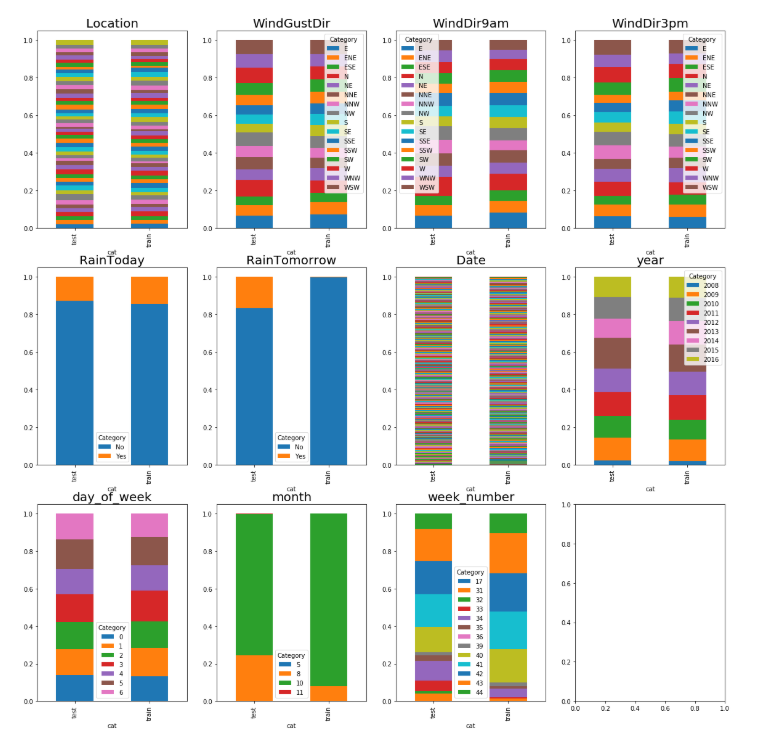 목적은 train과 test 별로 각각의 Category 비율 파악을 하는 것이 목적