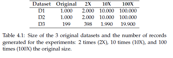 표 4.1은 세 가지 사례 연구 중 한 가지에 대해 실험에서 생성된 데이터의 양을 나타낸다.