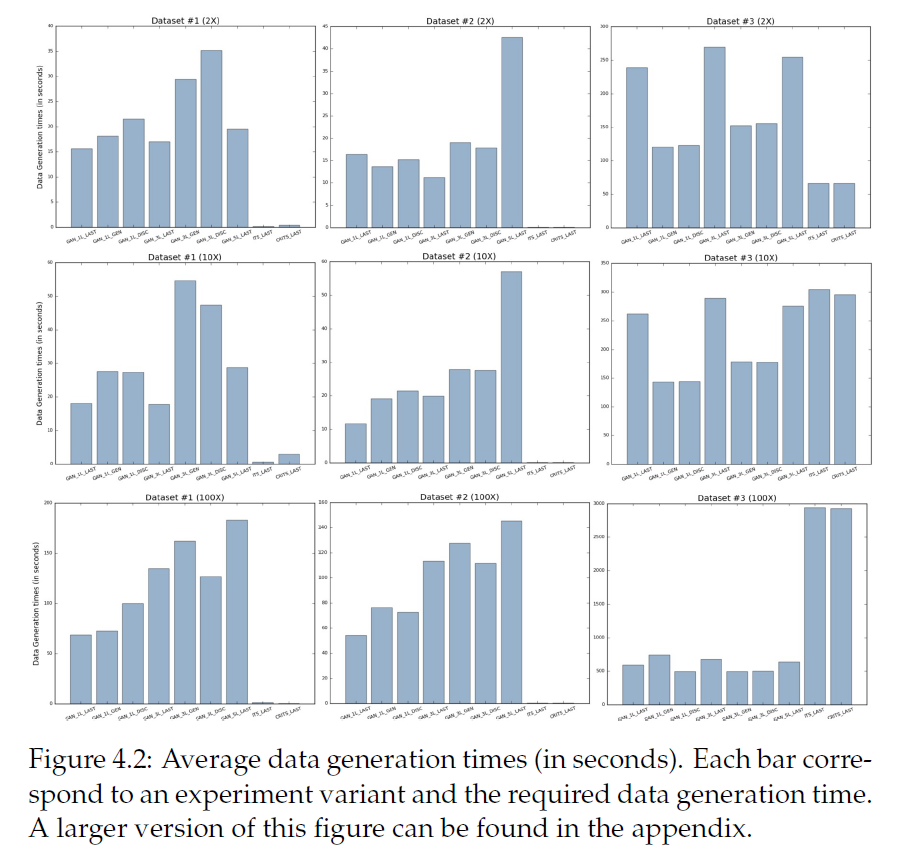 각 변형의 효율성은 필요한 기계 학습 또는 통계 모델을 교육하거나 생성하는 데 걸리는 시간과 지정된 수의 기록을 생성하는 데 걸리는 시간을 측정하여 분석한다.