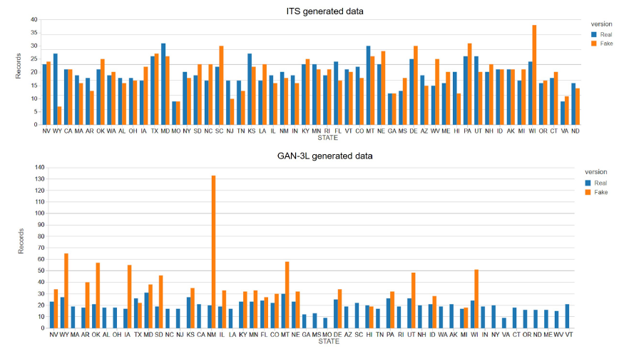 모든 수치는 ITS 및 CR-ITS 생성기가 원래 데이터와 관련하여 속성의 평균 Wasserstein Distance가 가장 낮음을 보여준다.