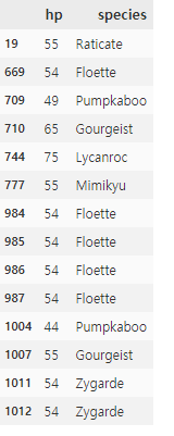 이런 식으로 해주게 되면 species별로 평균 hp보다 높은 포켓몬만 추출이 가능합니다!