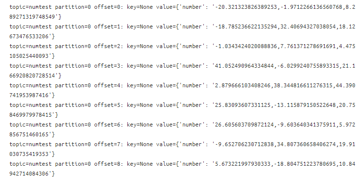 print ("topic=%s partition=%d offset=%d: key=%s value=%s" % (message.topic, message.partition,