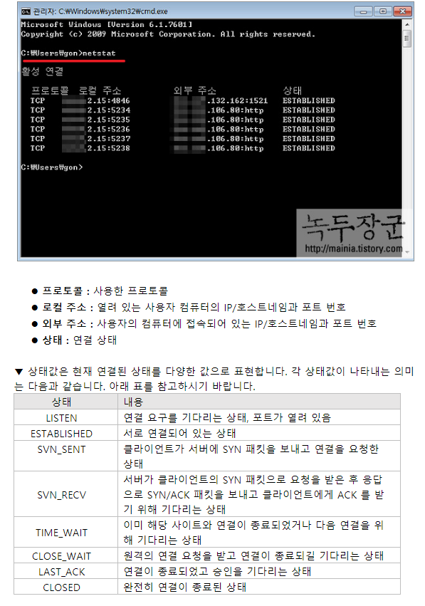 ## tcp 또는 udp 연결만 표시