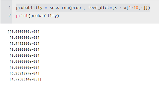 probability = sess.run(prob , feed_dict={X : x[1:10,:]})
