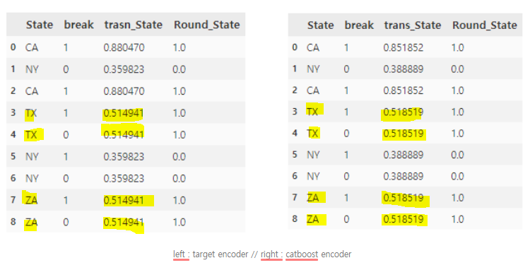 이러한 방법은 catboost encoder를 비교