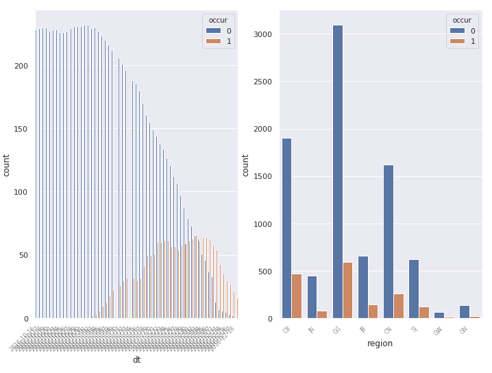 g = sns.countplot(x="region", data=tmp , hue = "occur" , ax = axx[1])