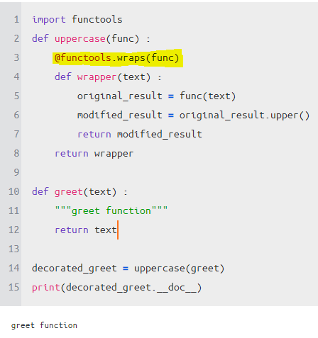 이로 인해 디버깅이 어려워질 수 있는데, 이것의 해결책은 functools.wraps 데코레이터를 사용하면 된다.