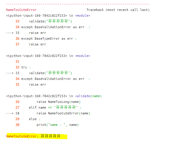 그래서 명확히 이름을 부여하여 이름만 보고 예외를 처리할 수 있는 형태로 봐야 디버깅이 쉬워진다.