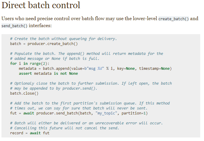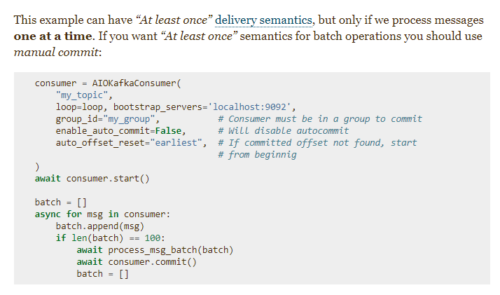 - Producer 뿐만 아니라 Consumer도 기능이 python-kafka 보다 훨씬 다양하다.