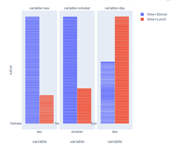 fig = px.bar(ddd, x="variable", y="value", color="time"