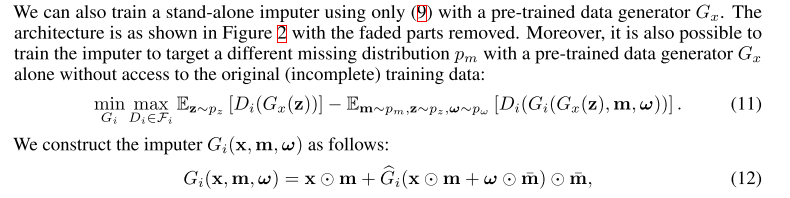 imputer는 불완전한 예시와 p_w로부터 뽑은 random vector (w)에 대한 하나의 함수이다.