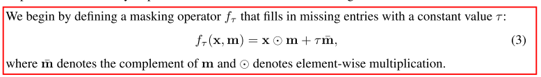 x ~ 완전 데이터 vector m (0,1) binary mask