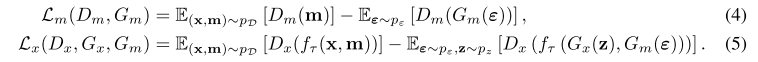 그래서 2가지 Pair를 쓴다 마스크 : (G_m , D_m) , Data : (G_x , D_x)