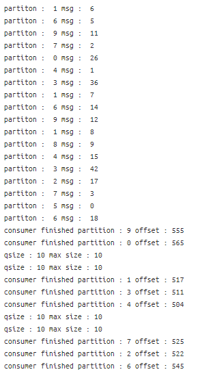 print("consumer finished partition : {} offset : {}".format(self.partition , msg.offset))