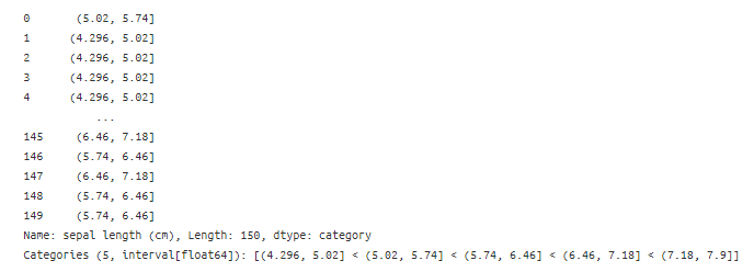 pd.cut(data['sepal length (cm)'],
