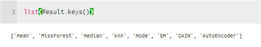Result라는 dictionary에 총 8개의 방법론을 사용해서 Imputation 된 값들이 들어가 있다.