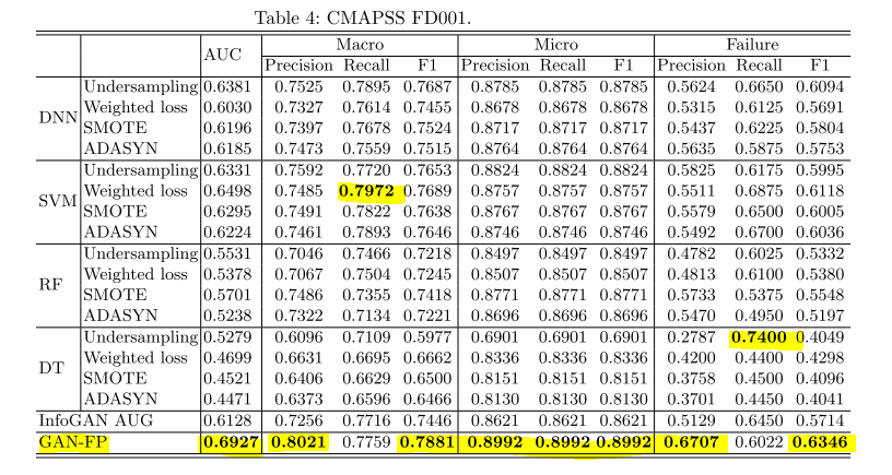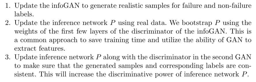 GAN-FP 은 일단 InfoGAN을 사용하여 현실적인 실패와 정상 데이터를 생성한다. 그리고 추론 네트워크의 앞단의 몇 개의 Layer의 가중치를 초기화한다고 한다. 그러면 이 추론 네트워크는 실패 실패와 정상 데이터를 사용하여 가중화된 목적 함수를 최적화하는 방향으로 조정된다.