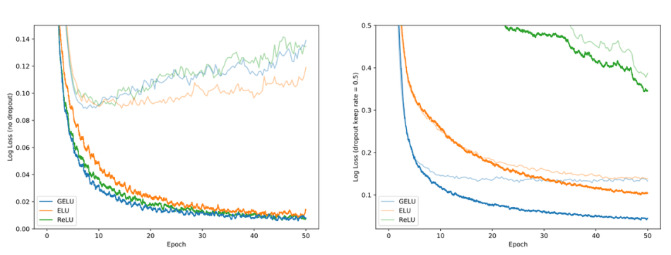 결국 글쓴이는 GELU, ELU, RELU 중에서 GELU가 가장 좋다고 말하고 있다.