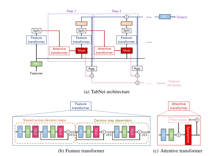 Figure (3) (a) TabNet 아키텍처 각 결정 단계