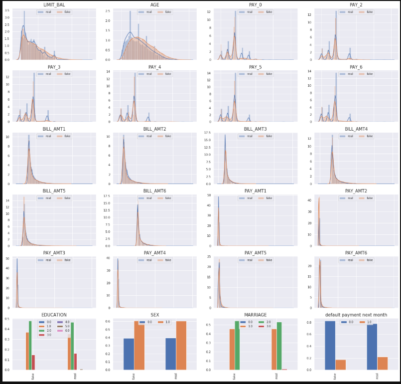 sns.distplot(data2[col], label = "real" , ax= ax[idx], kde=True)