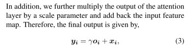 attention output에다가 scale parameter를 곱하고 input feature map을 더했다.