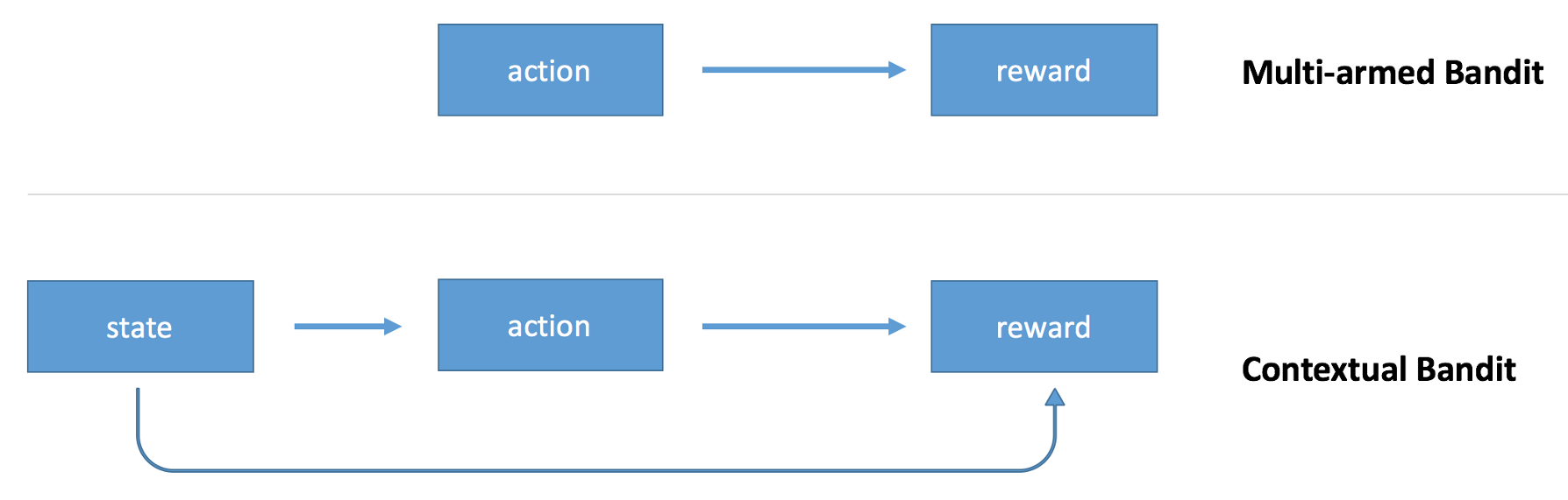 - multi-armed bandits의 확장으로써 contextual bandits