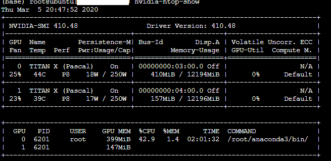 이러한 점을 개선한 것이 nvidia-htop이다. 중간 코드에 ps가 안먹는 것 같다고 하여 그걸 top을 이용하는 방식으로 수정을 했는데, 그럴 필요가 없어진 거라고 들었다. 아쉬우니 일단 공유