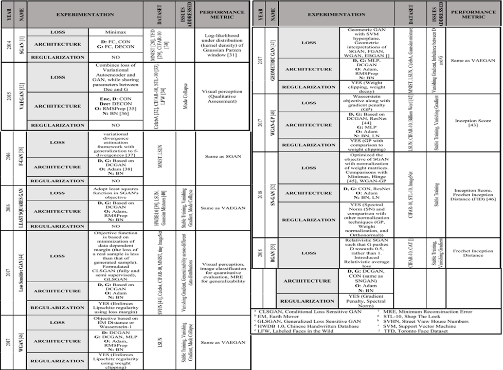 Table 1 Summary of loss variants in GANs