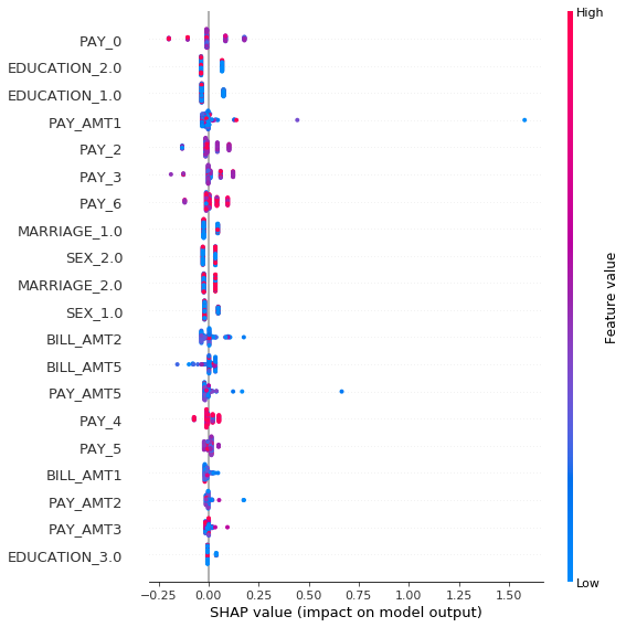shap.summary_plot(shap_values[c], Train_X.values[:100], feature_names=Test_X.columns)