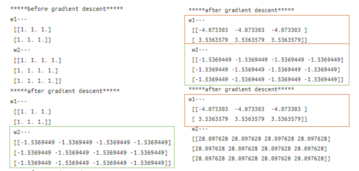 보면, w2만 학습시키고 싶을 때는 w2 만 학습하고, w1을 학습시키고 싶을 때는 w1 만 학습하는 것을 확인하였다.