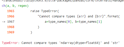 결측치를 그대로 있는 상태에서 데이터 변환을 해보려고 하니, TypeError가 발생하게 됩니다.