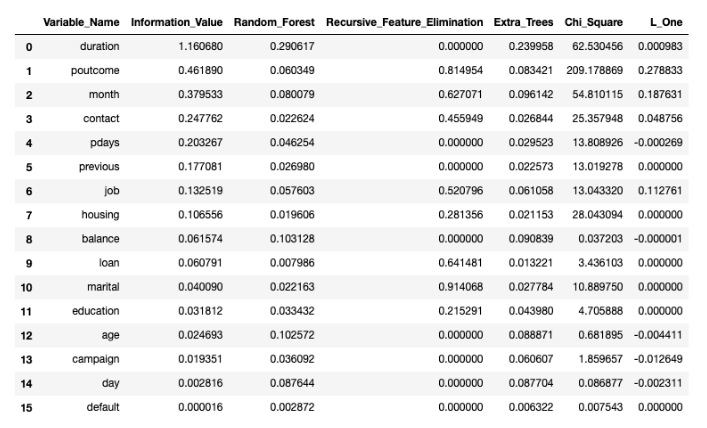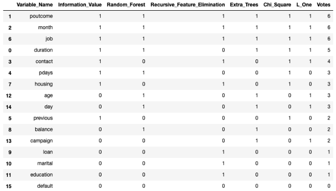 “The idea is to apply a variety of techniques to select variables. When an algorithm picks a variable, we give a vote for the variable. At the end, we calculate the total votes for each variables and then pick the best ones based on votes. This way, we end up picking the best variables with minimum effort in the variable selection process.”