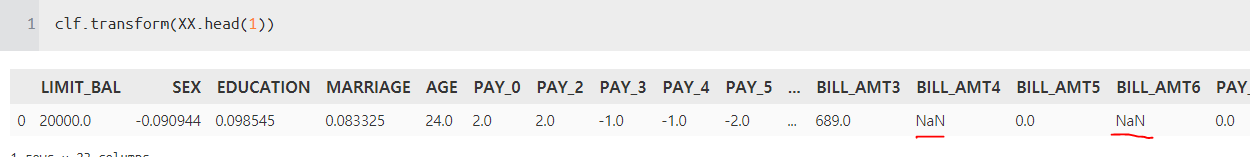 만약 실제 데이터가 결측이 있을 때, 결측을 처리하는 방법을 적용한 것과 적용하지 않는 것에서 transform시 에러가 나는 것을 확인했습니다.