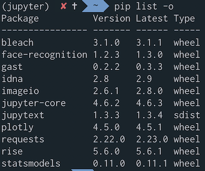 일단 오래된 패키지 조사하는 것을 다음과 같은 command를 치면 된다고 합니다.