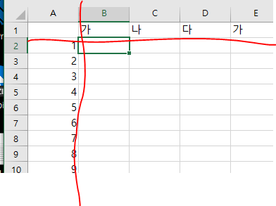 그래서 이번에는 틀 고정을 열 기준으로 해보자