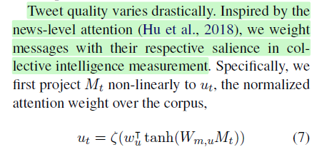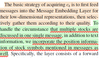 최근에 Hu et al(2018)은 주가 흐름 예측을 위해서 계층적인 어텐션 메카니즘(hierarchical attention mechanism)을 사용하여 텍스트에서 직접적으로 뉴스 시퀀스를 발굴하는 것을 제안했다고 함.