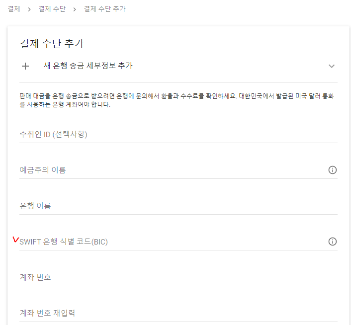 구글 지급 결제 수단을 추가하면, 다음과 같은 창이 뜹니다.