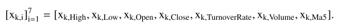High Price, Low Price, Open Price, Close Price, Volume, Turnover Rate and Ma5 (the average of closing price in past 5 days)