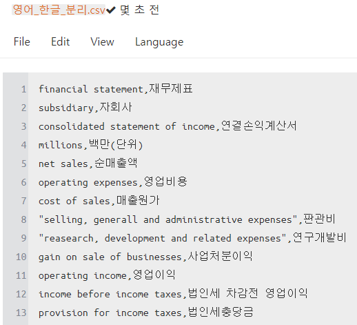 dd.to_csv("./영어_한글_분리.csv", index=False, header = False, encoding="CP949")