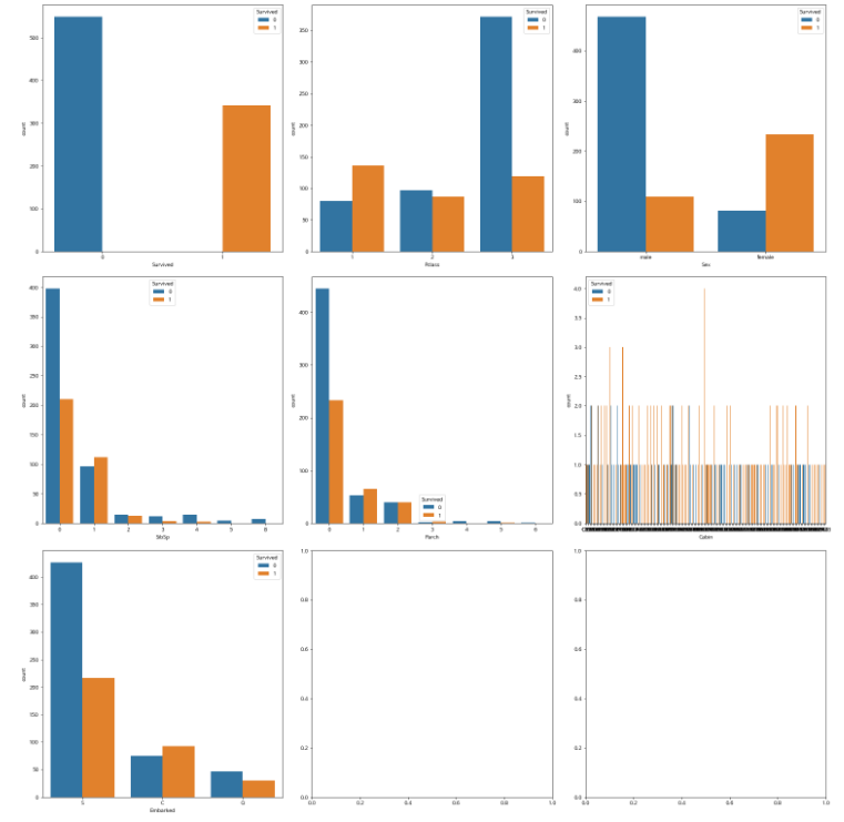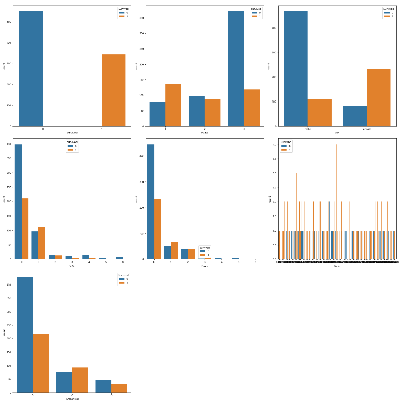 categorical_vars = ['Survived','Pclass','Sex','SibSp','Parch','Cabin','Embarked']