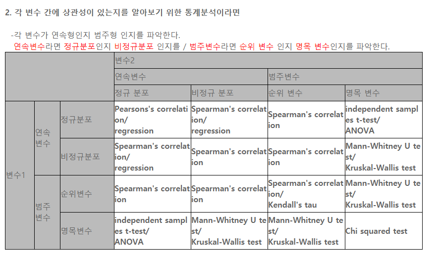 회귀분석과는 다르게 연속형 변수가 정규 분포가 아닐 경우 정규 분포로 만들 필요가 없다고 생각함.